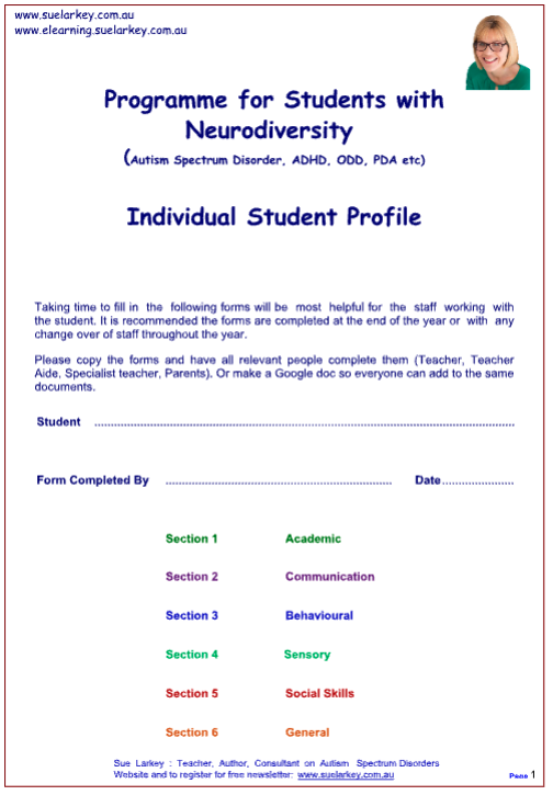 If you are looking for Sue Larkey live in-person workshops that are also NESA Accredited PD, please visit https://suelarkey.com.au/autism-workshops/